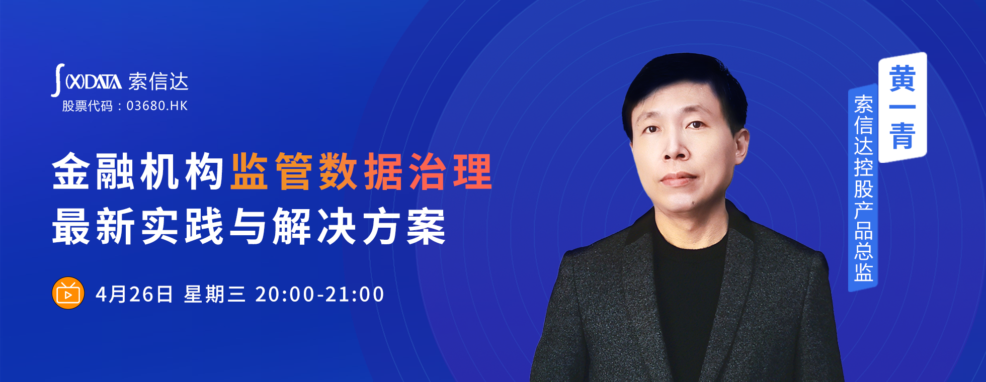 4月26日20:00,索信达控股产品总监黄一青为大家带来《金融机构监管数据治理最新实践与解决方案》直播课程,和大家聊聊金融机构监管数据治理的那些事,同时,索信达专为金融机构客户打造的“灵矩监管数据治理管控产品”也将在这次直播中首次发布!